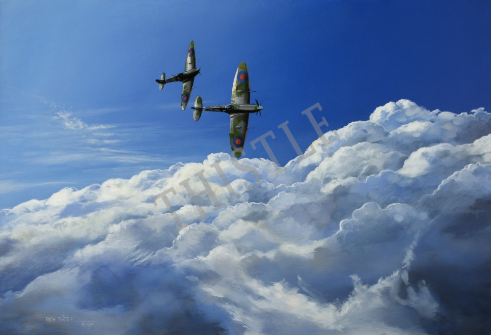 Mk IX Spitfires (VZ-F) Canadian Charlie Fox, Biggin Hill Wing 1944 & squadron mate enjoying non-combat flying WWII